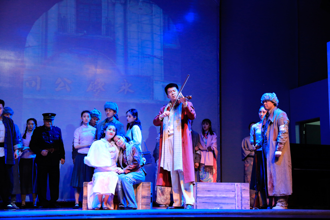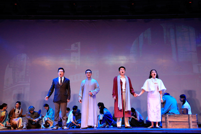 悠扬的音乐响起为演出拉开序幕,音乐剧《国之当歌》精彩上演,来自上海歌剧院的演员们精彩演绎了人民音乐家聂耳与左翼戏剧家田汉从相识到相知,直至共同创作“义勇军进行曲”的故事。剧情起自“倾听民众苦难之声”,继之以“吹响民族救亡号角”,融汇上海的都市风情和抗战的历史烟云,将聂耳激情而朴实的歌曲与音乐剧的现代演绎方式相结合,并以“国歌之父”聂耳的艺术人生为主线,展现了他的抱负与理想,弘扬了他的爱国主义精神。音乐剧不仅为永利官网师生上演了一场极具艺术品位的视听盛宴,更上了一堂传承爱国主义并激扬浩然正气的生动一课,专场演出在师生经久不息地掌声中落下帷幕。