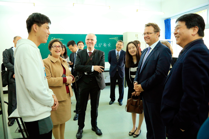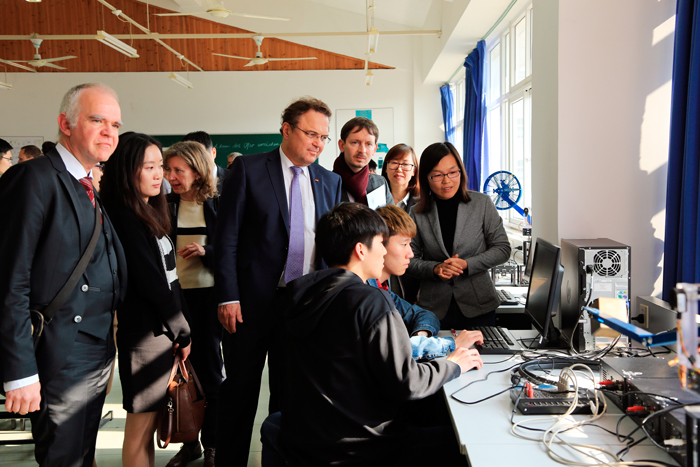 会后,来访团参观了永利官网中德工程学院和设计与艺术学院的实训基地,实地了解永利官网培养学生实践能力的标准和环境,并与实训室学生们进行了亲切友好交流。