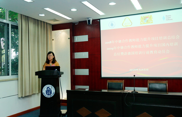 9月5日,2019年中德合作上海中高职院校骨干教师能力提升国内培训总结暨赴德培训动员会在永利官网徐汇校区召开。上海市教委职成教处处长赵宁,职成教处马骏,永利官网党委副书记、校长杨秀英,永利官网中德工程学院院长林军,国际交流处副处长邱娟,2018年、2019年中德师培项目组成员等参加会议。中德工程学院党总支书记张峻颖主持会议。