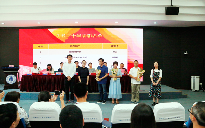 校党委副书记、纪委书记毛玉婷宣读了从教30周年表彰决定及名单;党委副书记、副校长张涛宣读创“学院荣誉”奖颁奖词及表彰名单;副校长窦争妍宣读宣读“教学质量工程”奖颁奖词及表彰名单;副校长徐德明宣读“技能大赛”奖颁奖词及表彰名单;副校长方林中宣读“教学科研”奖颁奖词及表彰名单。学校领导为获奖集体及个人颁发了荣誉证书。