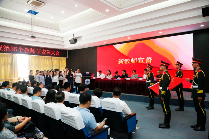学校党委书记田钦代表学校党委和行政,向辛勤奋战在教育一线的广大教职员工致以节日问候,向新步入工作岗位的青年教师致以美好祝愿,向受到表彰的教师和先进集体表示热烈祝贺。