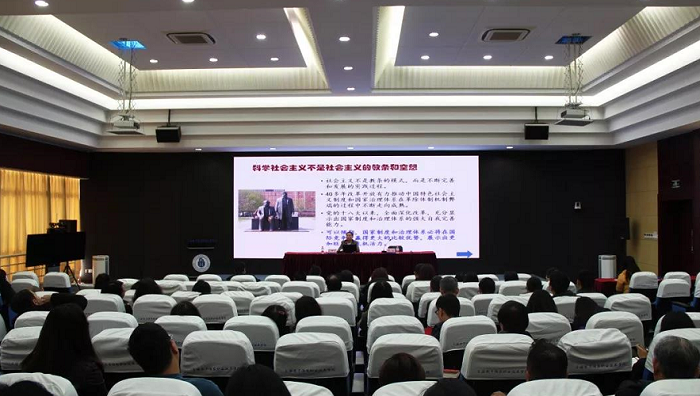 为深入学习贯彻十九届四中全会精神,结合“不忘初心、牢记使命”主题教育,12月6日,永利官网党委邀请市委“学习贯彻党的十九届四中全会精神”宣讲团成员、上海市人大华侨民族宗教事务委员会主任、外事委员会主任高德毅教授来校作党的十九届四中全会精神学习辅导报告。学校党委书记田钦主持会议。学校党委中心组成员、全体中层干部、全体党员、教师代表参加会议。
