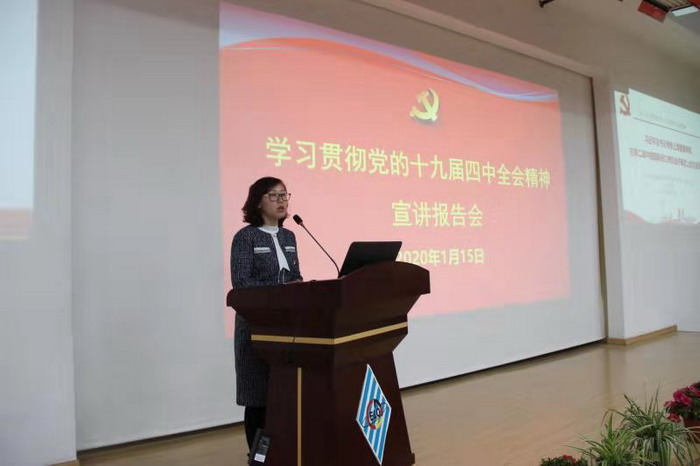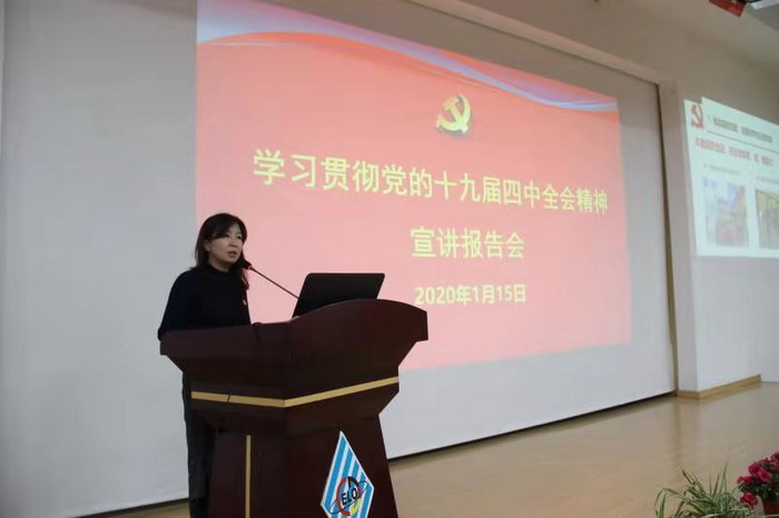 会上,杨校长围绕学习贯彻党的十九届四中全会精神这一主题,对全会提出的总体要求,总体目标和重点任务进行了系统解读,深刻阐明了党的十九届四中全会的重大意义和精神实质,以生动的案例和身边的故事阐释了中国特色社会主义制度和国家治理体系的显著优势。她指出党的十九届四中全会是一次具有开创性里程碑意义的重要会议,对进一步完善国家治理体系和治理能力现代化具有十分重要的意义,也为职业教育培养高素质人才提供了方向和根本遵循。