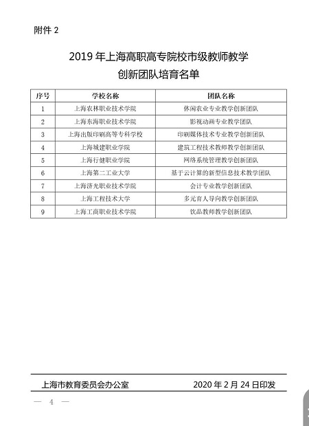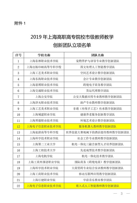 近日,根据《上海市教育委员会关于公布2019年度上海高职高专院校市级教师教学创新团队立项和培育名单的通知》(沪教委高〔2020〕15号),永利官网“服务机器人教师教学创新团队”和“嵌入式人工智能教师教学创新团队”获批“2019年度上海高职高专院校市级教师教学创新团队”。 永利官网将充分发挥市级教师教学创新团队的示范作用,鼓励教师积极参与教育教学改革,对项目建设情况进行跟踪检查,不断提高高等职业教育的教学水平和人才培养质量。(作者:马宏亮 供稿单位:校办)
