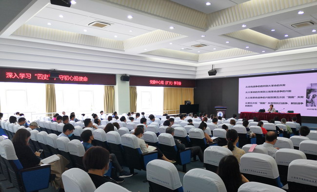 /span> 梅丽红教授/span>以《深入学习“四史”,不断增强守初心担使命的自觉》为题作辅导报告。报告围绕/span>“中华民族的历史任务与中国共产党的历史使命”“中国共产党与中华民族独立”“中国共产党与社会主义现代化”“中国特色社会主义的继承与超越”四大部分展开阐述。梅教授从民族独立开始讲起,介绍了中国人民在中国共产党的领导下推翻列强压迫实现民族独立、“四个现代化”的提出和内涵演变,到改革开放后开辟“富起来”的光明道路,再到中国特色社会主义进入新时代的艰难岁月和光辉历程。中国共产党从诞生之日起,就把中华民族的伟大梦想融入到政党的历史使命,带领全国人民把贫弱的中国建设成为社会主义强国,使我国逐渐走向世界舞台的中央。她讲到,中国特色社会主义破解了社会主义进程中的一个历史性难题,即在经济文化比较落后的东方国家如何通过社会主义实现向现代化的跨越。在坚定走中国特色社会主义道路的过程中,中国特色社会主义道路自信、理论自信、制度自信和文化自信在不断增强。一代代共产党人英勇牺牲、前赴后继,换来了今天的美好生活。我们要增强实现“两个一百年”奋斗目标的主动性、积极性、使命感,推动事业不断向前发展。青年人是国家的希望,高校责任重大、使命光荣,要为中国特色社会主义培养堪当大任的时代新人。