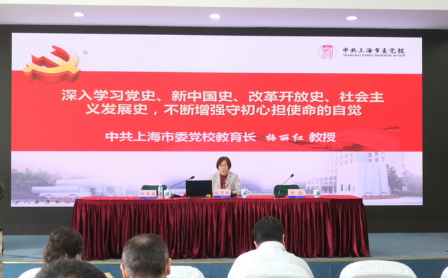 为深入学习贯彻落实习近平总书记考察上海重要讲话精神,落实市委、市教卫工作党委《关于开展党史、新中国史、改革/span>开放史、社会主义发展史学习教育的实施方案》要求,激励广大/span>党员、干部学好用好历史/span>,/span>以史鉴今、资政育人,/span>/span>/span>5/span>月/span>27/span>日,永利官网在奉贤校区/span>C108报告厅/span>召开党委中心组(扩大)学习会暨“四史”学习教育首场专题辅导报告会,邀请/span>市委宣讲团/span>专家成员、中共上海市委党校、上海行政学院教育长/span>梅丽红教授作辅导报告。全体校领导、中层干部、党支部书记、组织员参加了学习会。会议由党委副书记、校长杨秀英主持。