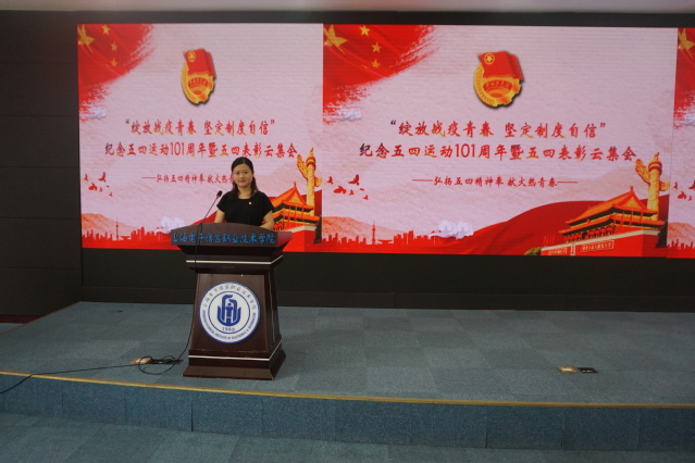 为进一步引领广大青年传承和弘扬五四精神,增强青年学子的社会责任感和使命感,2020年/span>5月29日,学校纪念五四运动101周年暨五四表彰云集会以线上线下相结合的方式在奉贤校区C108报告厅隆重举行。学校党委副书记、副校长张涛,/span>二级学院/span>(/span>含/span>中专部/span>)/span>分管学生工作的党总支副书记,团委班子、团总支负责人/span>以及团员青年代表/span>出席本次会议。/span>/span>会议由/span>校团委书记蔡林洁主持。