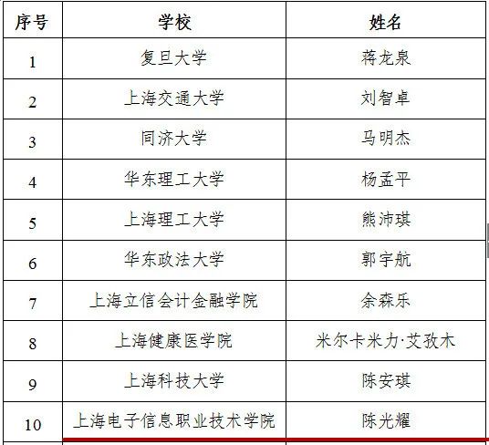 /span>近日,中共上海市教育卫生工作委员会、上海市教育委员会联合发布了“/span>2019/span>上海大学生年度人物”名单(沪教委德〔/span>2020/span>〕/span>18/span>号)。经学校推荐、材料审核、专家评审和公示,永利官网通信与信息工程学院陈光耀同学等/span>10/span>人获评“/span>2019/span>上海大学生年度人物”。/span>/span>/span>/p> /span>/span>/p> /span>/span> /span>/span>/strong>/p> “2019上海大学生年度人物”获奖名单/strong>/p> 陈光耀,男,汉族,共青团员,现就读于永利官网通信与信息工程学院软件技术专业。陈光耀同学出生于安徽省的贫困农家,出生时身体残疾,生活无法自理,需要终身依靠轮椅活动。在成长过程中,他克服身体的不便、手术的痛苦,用自己顽强的毅力向生命发出挑战。终于,凭着自己的努力,在双拐的支撑下,他能蹒跚行走了,在校园里,这个特殊的身影感动着每一位师生。