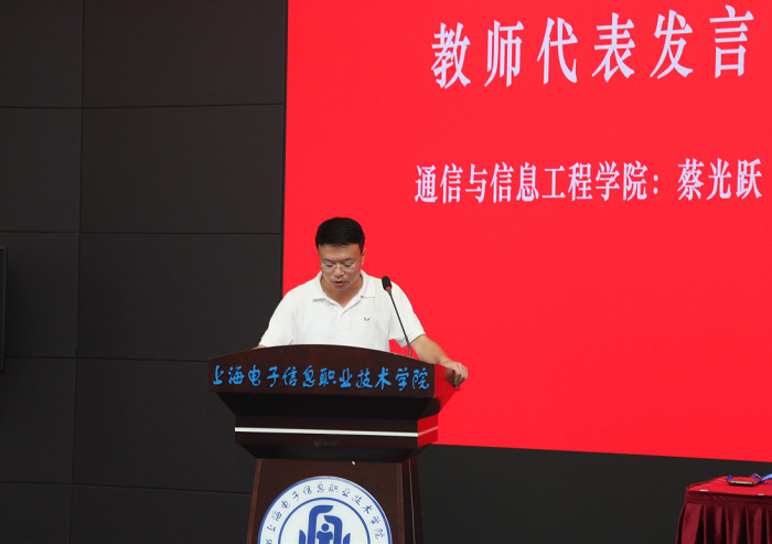 永利官网74名新进教师由电子技术与工程学院党总支副书记、院长邵瑛领誓,面向国旗进行了庄严宣誓。三位教师代表作获奖发言,从教30周年教师代表余浩老师发言,回首将个人发展与学校发展相融合、无怨无悔不断成长的教师生涯,热切寄语热爱教育、年轻有为的“后浪”们做出更多更好的成绩。“教学质量工程”奖获奖代表何永艳老师表示,在培养教师教学创新团队的过程中,不仅要培养精湛的教学技能,更要激活教师的创新基因。“教学科研”奖获奖代表蔡光跃老师从找准自我定位、熟悉行业现状、加强企业互动、持之以恒投入等四个方面分享了自己教学科研工作的体会和感想。电子技术与工程学院学生樊子欣代表学校莘莘学子,向老师们送上真挚的节日祝福,表达了对老师悉心教导和谆谆教诲的感激心声,承诺将努力成长为合格的新时代大国工匠,回报祖国,回馈母校。