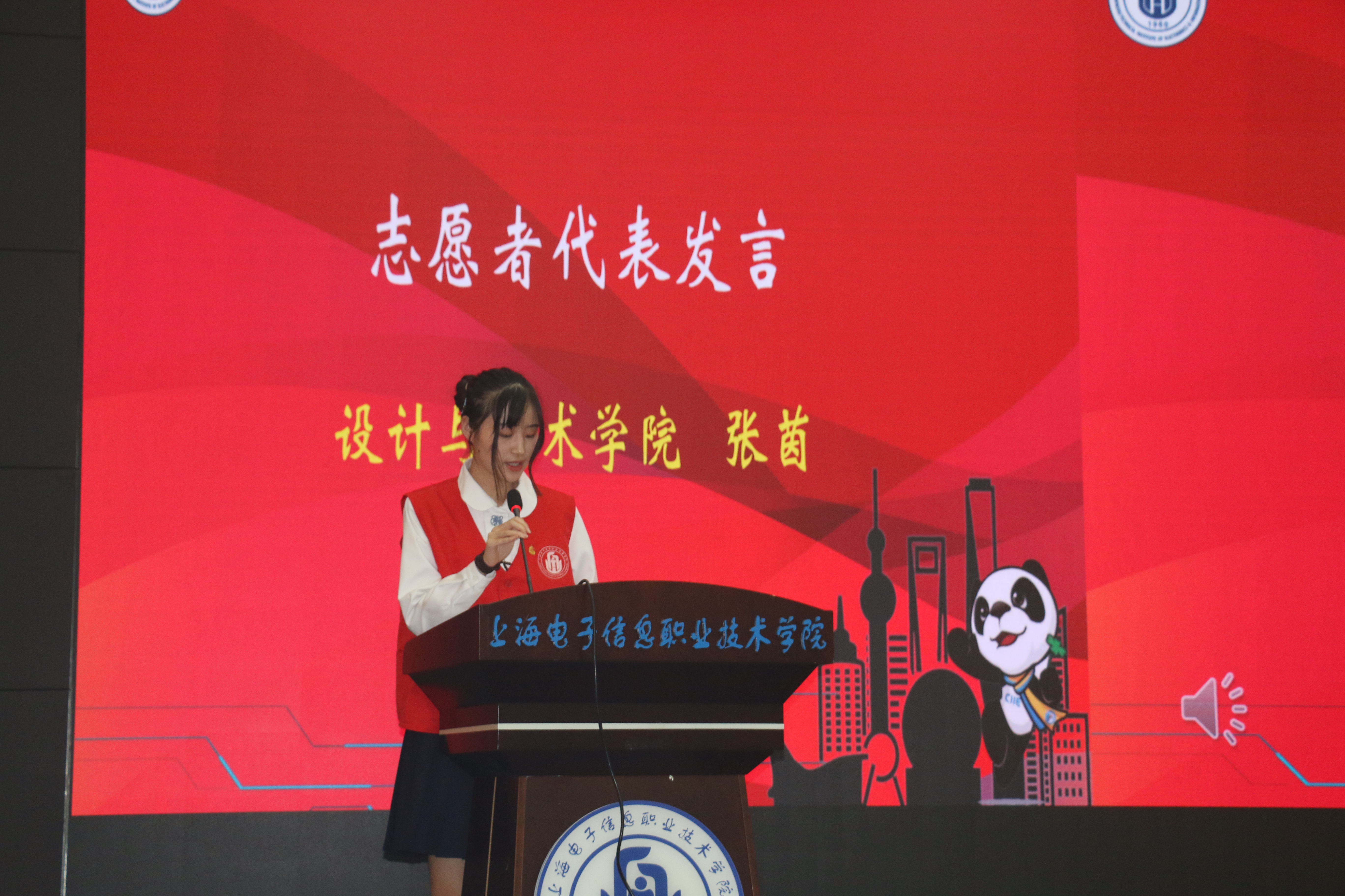 在观看进博会志愿者宣传视频后,大会在庄严的国歌声中拉开帷幕。校团委副书记何川/span>宣读成立yl23455永利官网第三届中国国际进口博览会志愿者临时团支部的决定。在校团委胡婕老师的带领下,全体同学重温了入团誓词。/span>来自设计与艺术学院的张茵同学作为进博会志愿者代表发言。她分享了/span>对于进博会的理解和认识/span>,结合自己的志愿服务经历分享了对志愿服务的要义、知行合一重要意义的理解,并代表全体志愿者表态,/span>将以积极的态度、饱满的热情,认真严谨完成服务工作/span>,展现新时代青年大学生风采。/span>/span>