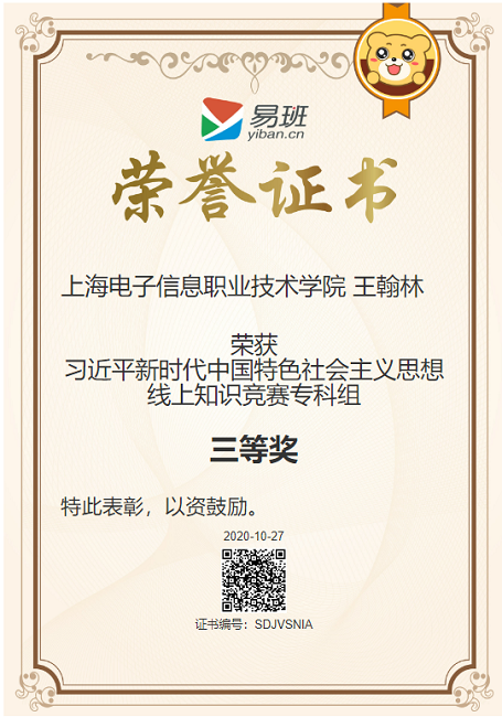 喜报传来!近期,在易班网刚刚结束的/span>“新时代 新思想”——习近平新时代中国特色社会主义思想线上主题活动中,永利官网荣获习近平新时代中国特色社会主义思想线上知识竞赛优秀组织奖,通信与信息工程学院王翰林同学荣获习近平新时代中国特色社会主义思想线上知识竞赛专科组三等奖。/span>/span>/span> /p> /span>