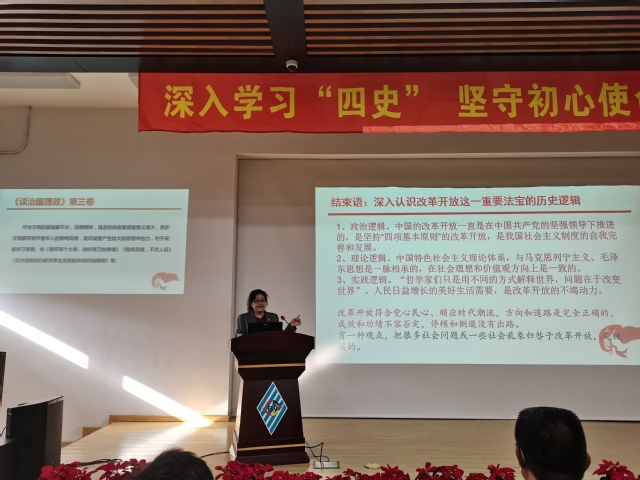 为深入贯彻习近平总书记关于深入学习党史、新中国史、改革开放史、社会主义发展史的重要指示精神,全面系统学习《习近平谈治国理政》第三卷,引导广大党员守初心、悟真理、讲实效,2020年10月30日,校党委副书记、校长杨秀英在闵行校区报告厅,以“学习‘四史’传承精神,努力实现中华民族伟大复兴”为主题,为中专部直属党支部、教学管理直属党支部、中德工程学院党总支的师生党员和入党积极分子上了一堂生动的专题党课。/span>/p> 专题党课上,杨秀英校长开篇点明“四史”真谛——这是中国共产党为人民谋幸福、为民族谋复兴、为世界谋大同的伟大实践史。接着,杨校长以学习党史锻造组织队伍、学习新中国史传承创业精神、学习改革开放史弘扬创新精神、学习社会主义发展史坚定道路自信为分论点,以个人在学习“四史”相关知识、/span>学习/span>《习近平谈治国理政》第三卷以及十九届五中全会精神的过程中积累的大量生动历史实例和亲身的体会为素材,带领全体党员教师们一同感受当前新中国的建设成就以及国际地位的提升,感受中国国力的明显提升为人民生活水平带来的显著改善。/span>/span>/p> /span>/span>/p> 随后,杨校长结合教育教学的发展规划为大家描绘学校未来的发展愿景。她指出,学校将继续以建成企业社会多元参与、专业特色鲜明、上海一流、全国知名、走向国际、具有“双高/span>”/span>标准的上海高等职业院校“领头羊”为目标,围绕立德树人根本任务,加强现代大学制度建设,完善治理体系,提升治理能力。同时积极探索产教融合、校企联合、工学结合、中外合作的“四合”办学新机制,以“匠文化”为核心,着力建设特色鲜明的校园文化。未来学校还将打造一批产教融合、校企合作的产业学院、协同发展基地、研究所和大师工作室等。杨校长鼓励大家,要深入持久地学好“四史”,自觉用新思想统一思想,在新时代一以贯之地坚持和发展中国特色社会主义,为实现中华民族伟大复兴提供历史指引、思想源泉和精神力量,从而带动全校党员干部和师生加强学习,形成“四史”学习的浓厚氛围。/span>/span>/p> /span>/span>/p> 此次专题党课为将“四史”学习和学习《习近平谈治国理政》第三卷进行紧密结合做了有效示范。课后,大家纷纷表示,在今后的学习工作中,要不断从“四史”和习近平新时代中国特色社会主义思想中汲取前进力量,立足本职岗位,严谨治学、务实创新,齐心协力为学校的发展贡献力量。(作者:何佳莉 供稿单位:中专部)/span>/span>