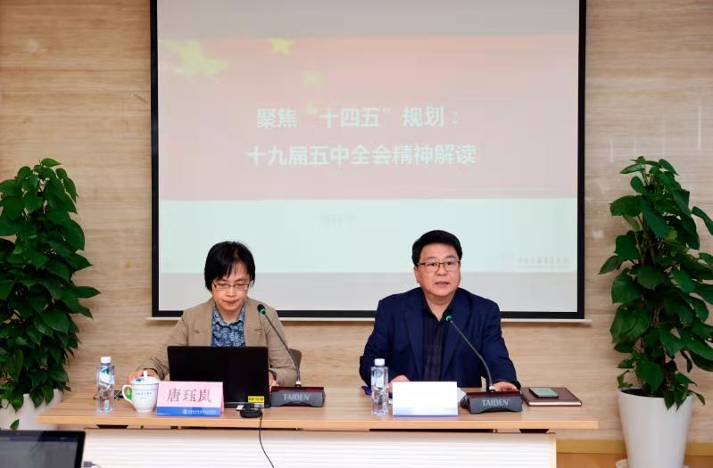 11/span>月/span>5/span>日,学校在/span>A207/span>会议室举行党委理论学习中心组学习会,学习贯彻党的十九届五中全会精神。中共上海市委党校经济学教研部主任、理论经济学研究所所长、上海市经济学会副秘书长唐珏岚教授应邀作了题为《聚焦“十四五”规划:十九届五中全会精神解读》专题辅导报告。党委书记田钦主持学习会。学校党政领导、各部门党政负责人参加学习。/span>/p>
