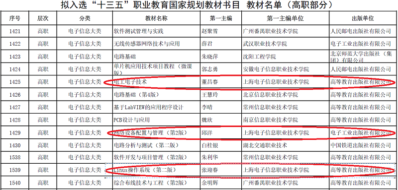 根据教育部网站《关于拟入选“十三五/span>/span>”职业教育国家规划教材书目教材名单的公示》/span>/span>,永利官网教师/span>董昌春主编的《电工电子技术》、邱洋主编的《网络设备配置与管理(第/span>2/span>版)》、张迎春主编的《/span>Linux/span>操作系统(第二版)》/span>/span>/span>/span>三本教材入选“十三五”职业教育国家规划教材。/span>/span>/p> “十三五”职业教育国家规划教材是中华人民共和国教育部为深入贯彻党的十九大精神和全国教育大会部署,落实党中央、国务院关于教材建设的决策部署和《国家职业教育改革实施方案》有关要求,深化职业教育“三教”改革,经组织出版单位申报、专家评审立项、出版单位编写(修订)和全国职业教育教材审定委员会审定等过程评选而出。(供稿单位:通信与信息工程学院)/span>/p>