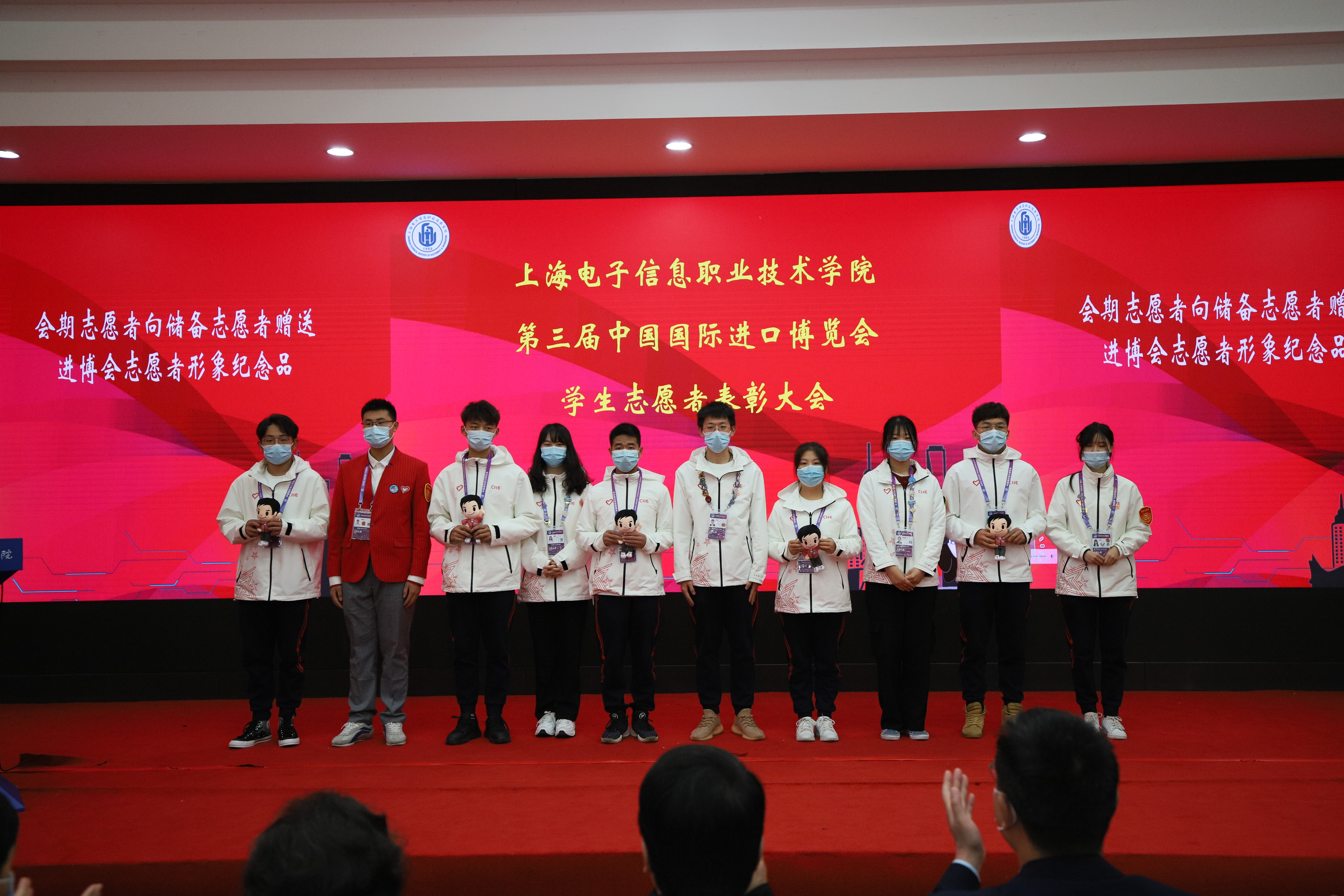 大会在庄严的国歌声中拉开序幕。在观看进博会志愿者工作回顾视频后,校团委副书记何川宣读了《学校第三届进博会优秀志愿者标兵表彰的决定》。校党委副书记、校长杨秀英为优秀志愿者标兵颁发奖杯,校党委副书记、副校长张涛为志愿者代表颁发学校第三届进博会文创品。