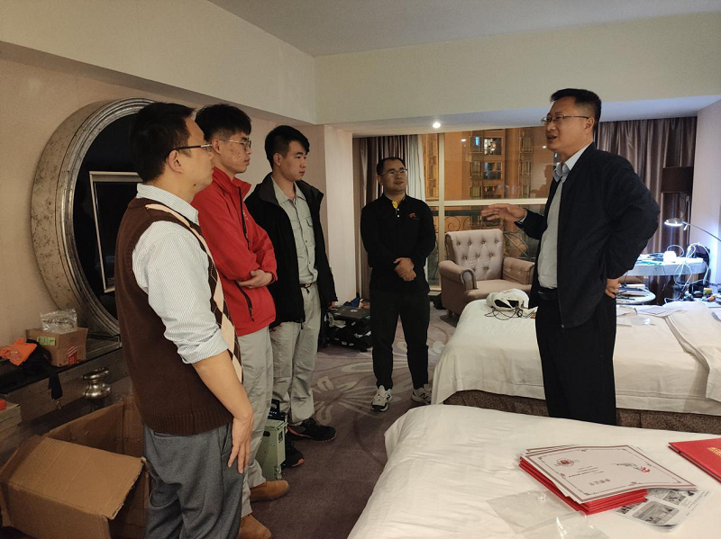 /span> 12/span>月/span>9/span>日晚,张涛副书记/span>/span>来到参赛团队入住酒店,与参加第一届全国技能大赛师生亲切交谈,了解参赛选手训练和准备情况,对指导教师和参训选手的辛勤付出给予充分的肯定,指出一定要做好疫情防护工作,同时鼓励参赛选手团结奋进、攻坚克难、勇于拼搏,争取比出好成绩。/span>/span>/p>