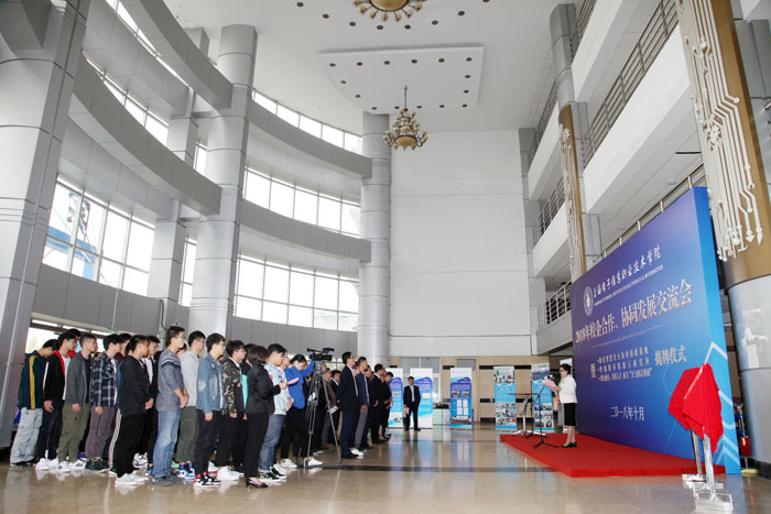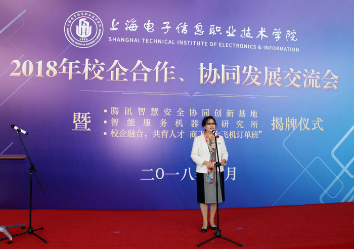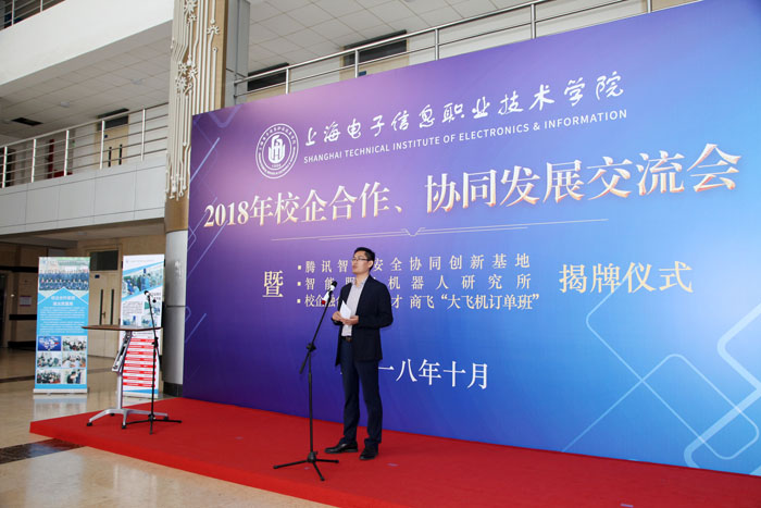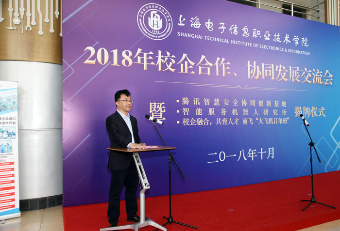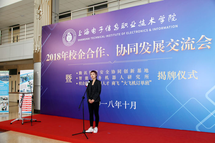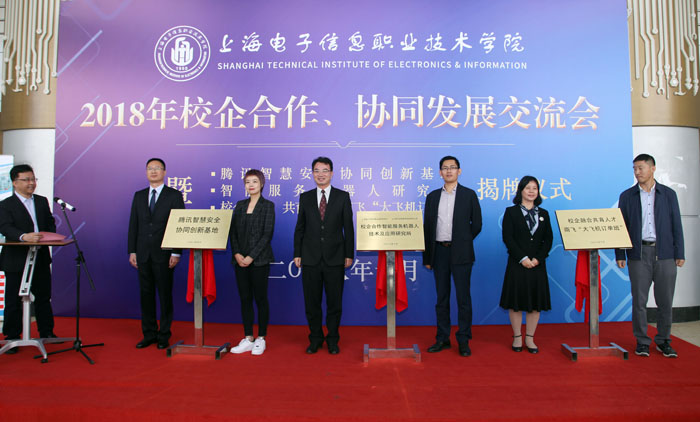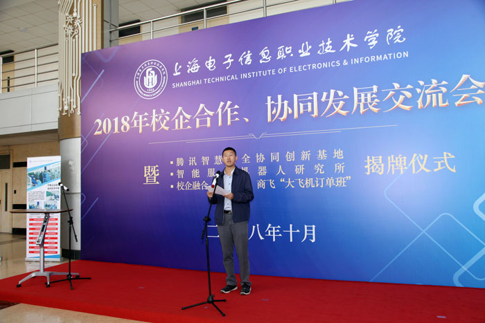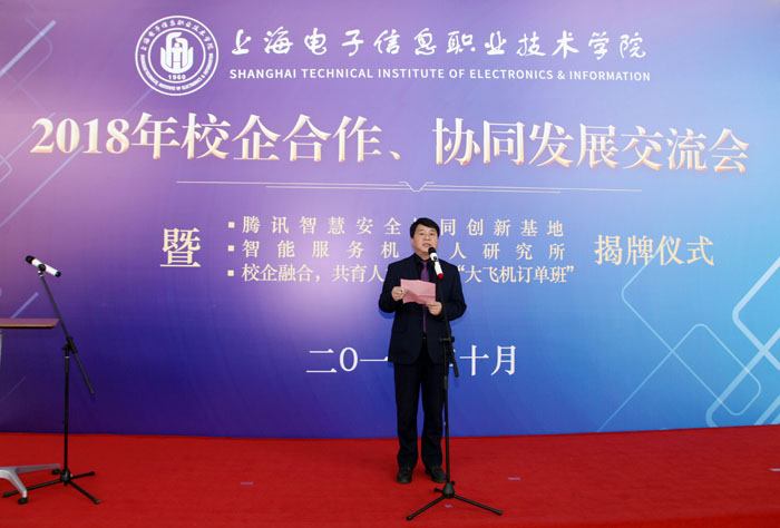 10月26日上午,yl23455永利官网2018年校企合作、协同发展交流会暨腾讯智慧安全协同创新基地、智能服务机器人研究所、校企融合,共育人才——商飞“大飞机订单班”揭牌仪式在奉贤校区实训中心N楼一楼大厅隆重举行。中国商飞上海飞机制造有限公司、腾讯公司、中国人工智能学会、浙江大学、上海交通大学、上海天辰智能科技有限公司等单位的领导和专家,学校党委书记田钦,党委副书记、校长杨秀英,党委副书记、副校长顾剑锋,副校长窦争妍、副校长张涛,以及各二级学院的领导出席会议。会议由校企合作处处长李晓峰主持,商飞“大飞机订单班”学生以及中德工程学院留学生代表共同见证了此次活动。 会上,腾讯智慧安全行业合作总监艾蕊女士、上海天辰智能科技有限公司总经理张阳新先生、中国商飞上海飞机制造有限公司培训中心主任郭家宁先生分别向与会来宾介绍了合作项目并表示:希望通过校企全方位协同发展,提升学生职业素养和职业能力,提高学校人才培养质量;通过不断实践、探索、创新校企合作模式,进一步推动校企合作向更深层次发展,实现企业、学校、学生三方共嬴。/span>/p> 之后,腾讯安全总监艾蕊、天辰科技总经理张阳新、商飞培训中心主任郭家宁以及学校副校长顾剑锋、窦争妍、张涛共同为腾讯智慧安全协同创新基地、智能服务机器人研究所、商飞“大飞机订单班”揭牌。揭牌仪式上,学校领导还向企业代表赠送了校企合作工作室学生亲手制作的学习作品。