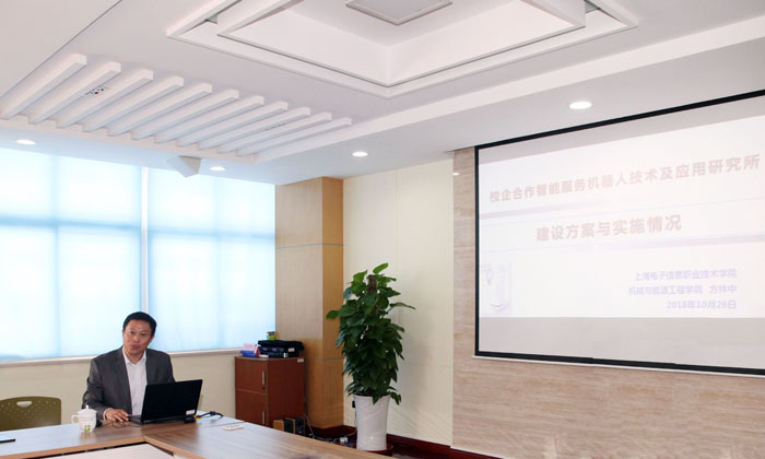 /span> 机械与能源工程学院院长方林中从研究所建设背景、建设方案以及研究所实施三个方面介绍了智能服务机器人研究所重点工作;上海天辰智能科技有限公司总经理张阳新分享了人工智能背景下创新型企业校企合作路径,表示本次的校企合作智能服务机器人研究所将采取项目性的学生培养模式,让学生成为最大的收益者。