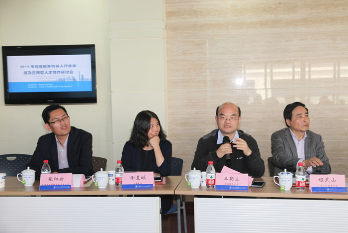 2018年10月26日,yl23455永利官网奉贤校区召开上海市智能服务机器人行业发展及应用型人才培养研讨会。中国人工智能学会常务理事长、中国人工智能学会智能产品与产业工作委员会韩力群主任,上海交通大学曹其新教授,浙江大学刘山教授,上海大学徐昱琳教授,上海理工大学王朝立教授,上海工程技术大学程武山教授,上海电机学院王廷军教授,国家机器人检测与评定中心郑凯宇主任,上海天辰智能科技有限公司张阳新总经理,yl23455永利官网党委副书记、校长杨秀英、副校长窦争妍,机械与能源工程学院院长方林中等出席大会。会议由机械与能源工程学院党总支副书记何永艳主持。/p>