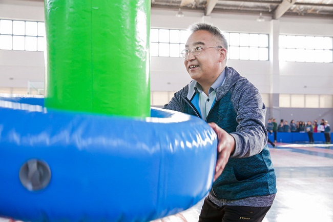 本次运动会围绕“增素质· 强友谊·助凝聚”的活动主题,设置了插秧接力、旱地接龙、无敌风火轮、超级汉诺塔和趣味接力5个运动项目,每个项目都围绕“健康、趣味”的原则,立足趣味游戏与体育锻炼相结合,以新颖、活泼、文明、公正的风格,展现永利官网教职工团结、活泼的精神风貌。