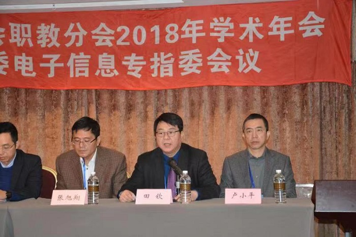 为进一步贯彻落实国务院、教育部有关职业教育文件精神,深入推进职业教育教学改革,加快职业院校电子信息类专业教学改革创新工作,11月30日—12月1日,由中国电子教育学会职业技术教育分会、全国工业和信息化职业教育教学指导委员会电子信息专指委主办,永利官网承办的中国电子教育职教分会2018年学术年会暨工信行指委电子信息专指委会议在上海召开。此次会议旨在加强全国各职业院校电子信息类专业教学成果与经验交流,推进教育部高职电子信息类专业教学标准制(修)订(第二批)工作。教育主管部门领导、教育研究机构专家、中国电子教育学会领导、职教分会成员单位领导和理事、电子信息行业院校相关负责人等100余名代表参加会议。中国电子教育学会职教分会会长武马群、上海市教育委员会高教处副处长赵坚、中国电子教育学会理事长马蔷、永利官网党委书记田钦出席了会议并作了致辞。永利官网党委副书记、校长杨秀英、副校长方林中及教务处、电子技术与工程学院、通信与信息工程学院、机械与能源工程学院、中专部、继续教育学院、学校办公室等相关人员参加了会议。