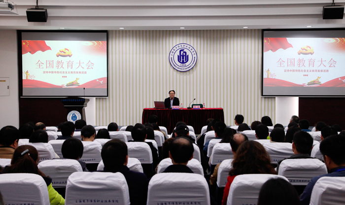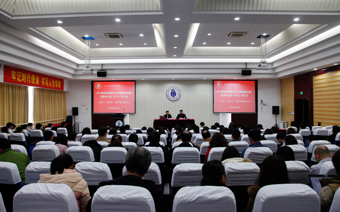 12月21日,学校学习贯彻全国教育大会精神宣讲暨党委中心组(扩大)学习会在C108报告厅举行。上海市教委副主任倪闽景来校作学习贯彻全国教育大会精神宣讲。学校党委书记田钦主持会议。学校党委中心组成员、各党总支中心组成员、全体中层干部、各党支部书记、教师代表、学生代表参加会议。