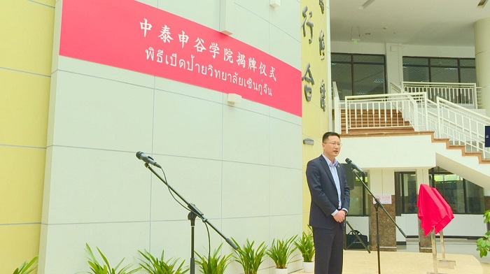 永利官网党委副书记、副校长张涛致欢迎辞,对泰方领导、教师的到来表示热烈欢迎。他讲到,2018年10月,双方以学生训练营的形式,拉开了中泰职业教育合作和文化交流的序幕。今天,双方共同举办中泰申谷学院揭牌仪式,充分体现了两国国家战略以及在职业教育领域的实际需求。相信在双方的共同努力下,一定能够开创中泰职业教育领域合作的新篇章。希望双方能够精诚合作,促进教育教学向纵深发展。