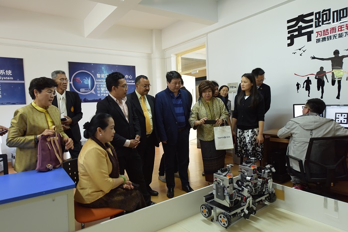 /span> 接下来,永利官网党委书记田钦与塔维塞·库桑院长、冲普努·波邦松女士、庄雷先生共同为中泰申谷学院揭牌。揭牌仪式后,双方共同参观了机械与能源工程学院、电子技术与工程学院实训场所。