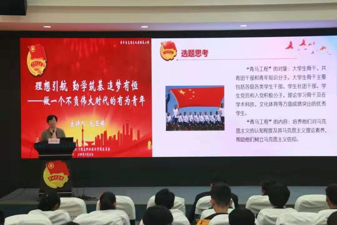 为进一步推进中国特色社会主义理论和习近平总书记系列讲话精神进团课,紧紧依靠党建带团建,牢牢把握育人的主线,使青年团员成长为中国特色社会主义事业合格的建设者和可靠的接班人,11月15日中午,校党委副书记、纪委书记毛玉婷应邀在中德楼C108报告厅为2019年青年马克思主义者培养工程的大骨班及活力班学员作《理想引航 勤学筑基 追梦有恒——做一个不负伟大时代的有为青年》主题团课。