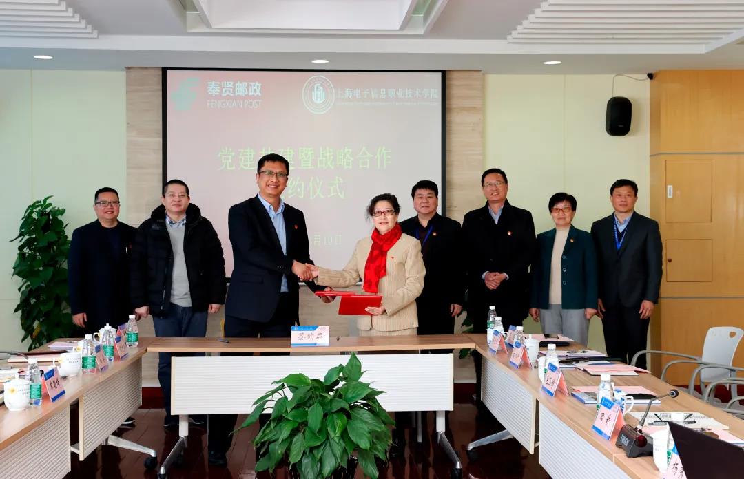党建共建为引领,校企协同共育人。为进一步加强学校党建平台建设,推进校企合作协同育人,3月10日上午,学校与中国邮政集团有限公司上海市奉贤区分公司(奉贤邮政)举行党建共建暨战略合作签约仪式。