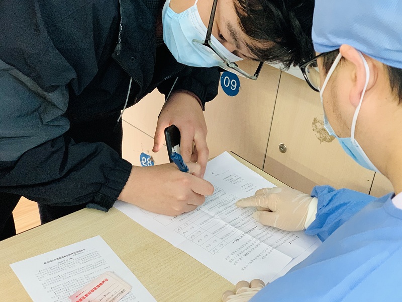 在现场留观区,辅导员老师详细关心了解同学情况。据首批次接种同学反馈,接种后均未出现不良反应。个别同学出现困倦,根据现场医生解读,通常无需处理,休息1-2天便可自行恢复。
