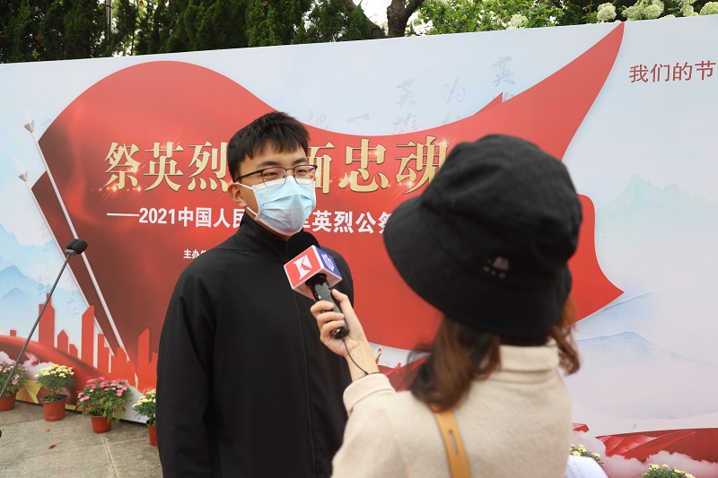 经济与管理学院学生周新人说:“在当今世界正面临百年未有之大变局的时代背景下,作为在校大学生,我们要更加努力学习,争做时代新人,作出新时代的贡献。今天的仪式让我们在学思践悟中加强了党史学习,把这些历史知识入心入脑。”中德工程学院学生段泽琳在接受采访时这样说:“今天的公祭仪式很庄重,很肃穆。在了解到这些英勇牺牲的烈士感人事迹后,我更加坚定自己要去部队锻炼一番,保家卫国。”