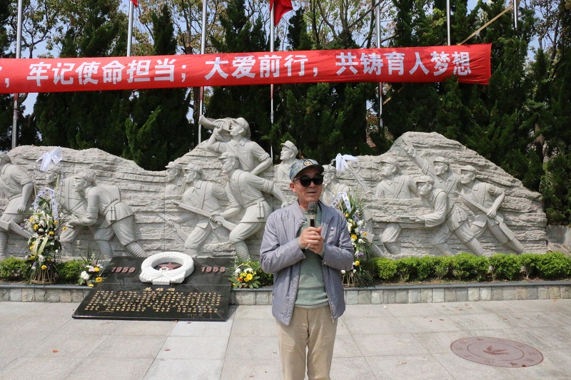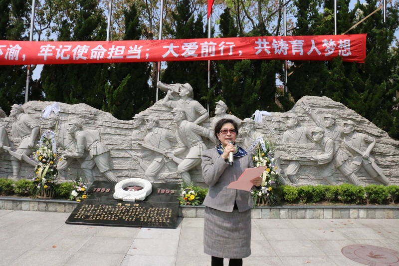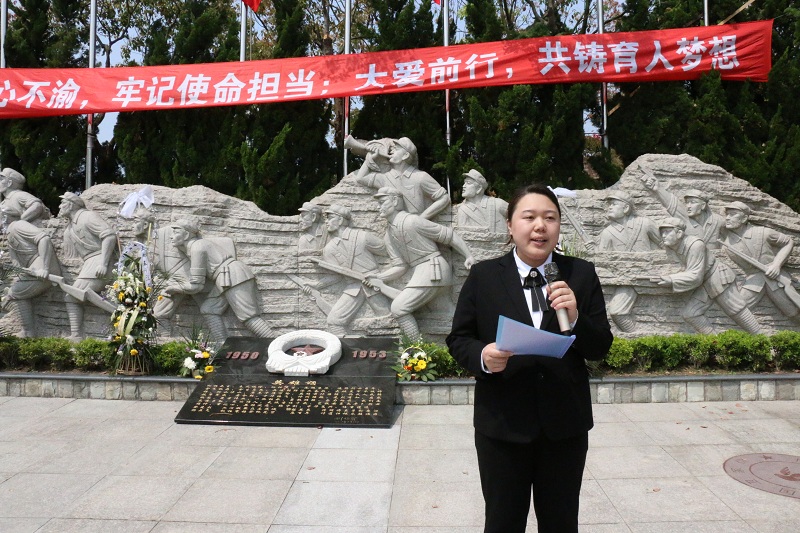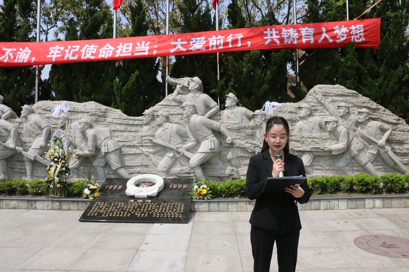 上海永福园陵有限公司徐渭岳董事长发表讲话。他表示,希望同学们通过缅怀革命先烈、学习革命先辈的动人故事和伟大精神,能够加深对革命历史的认识和感悟,积极传承和发扬民族精神和革命奋斗精神。同时,也要珍惜现有的学习实践机会,感恩国家、社会、学校给予的关爱和支持,将其转化为奋斗的动力,不断提升、完善自我,提高自身素质,肩负起时代赋予青年人的历史重任。