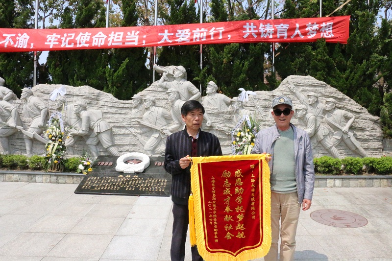 仪式伊始,受助学生代表向上海永福园陵有限公司赠送锦旗,表达了他们对公司大爱助学的感恩之情。