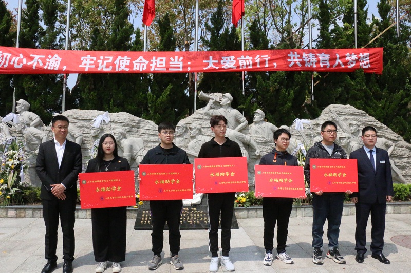为深入推进“521大爱铸梦”发展型资助育人工程,进一步弘扬爱国精神和革命奋斗精神,引导学生学好党的历史,感恩伟大祖国,从党的百年历程中汲取奋进的智慧和力量,4月16日下午,永利官网在上海人民志愿军纪念广场举行永福奖助学金、徐渭岳奖学金颁发仪式暨感恩主题教育活动。上海永福园陵有限公司董事长徐渭岳、党支部书记孙伯根、办公室主任徐冬,学校党委副书记、校长杨秀英、党委副书记、副校长张涛、学生处副处长栾文飞出席仪式,学生处相关老师、受助学生代表及少数民族学生代表共计70余人参加。