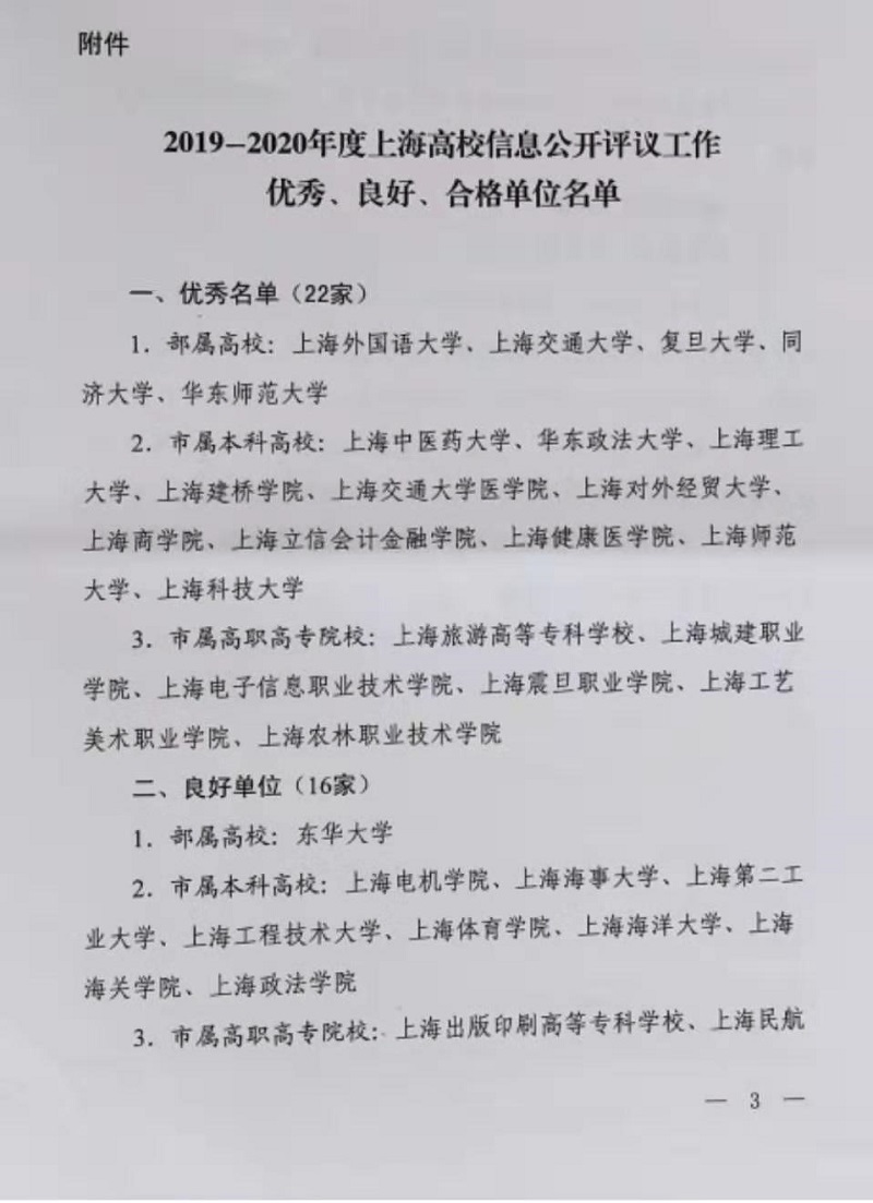 近日,上海市教委发布《上海市教育委员会关于公2019-2020年度上海高校信息公开评议结果的通知》(沪教委办〔2021〕23号),公布了2019-2020年度上海高校信息公开评议工作优秀单位。永利官网连续第四年获此殊荣。