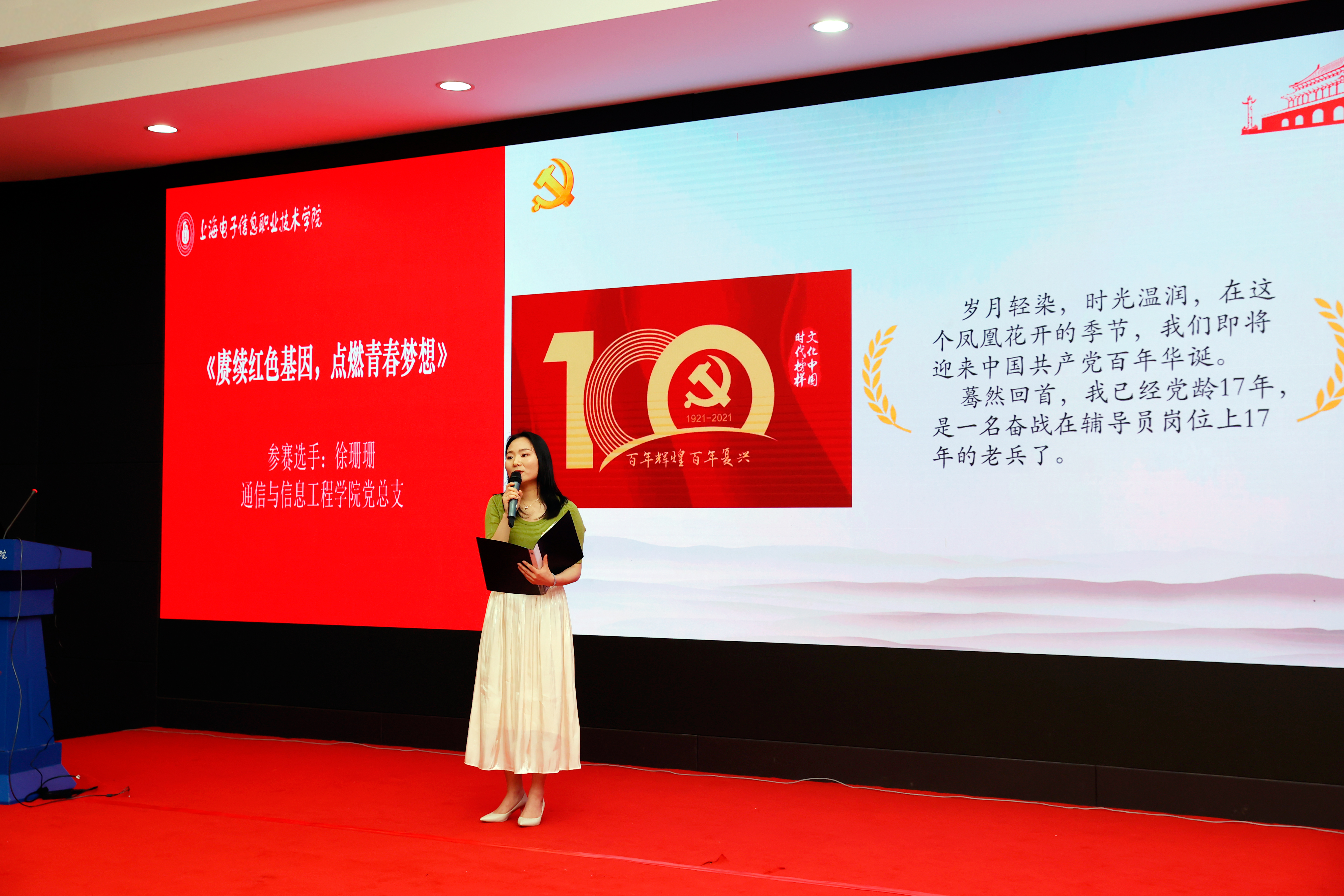 比赛共有9个二级学院19名教师参加,依次从《曙光》《百年荣光 奋斗不止》《传递中国力量》《三尺讲台守初心,风华岁月谱华章》《赓续红色基因,点燃青春梦想》《一面款式特殊的五星红旗》等15个鲜活主题展开演讲。比赛现场,气氛热烈、掌声不断,参赛教师们或慷慨激昂直抒胸臆,或饱含深情娓娓道来,选手从一线教师的角度,结合自身工作实际和身边典型人物事迹,追忆中华民族奋起抗争的峥嵘岁月,回顾建党百年取得的累累硕果,表达在党的领导下推进教育事业蓬勃发展的美好祝愿。