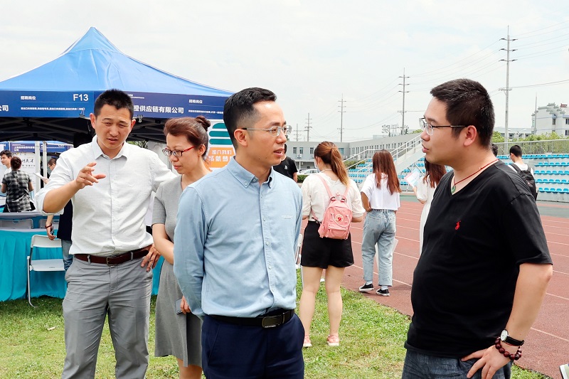 此次招聘会,还特设了颛桥镇企业专区,由镇就业促进中心组织辖区企业共同前来参与,颛桥镇就业促进中心的王晨副主任说:“我们致力于服务民生、服务企业,这次我们组团前来,就是整合资源,与校方实现优势互补,积极助力企业发展,助力高校毕业生实现更高质量和更充分就业。”学校武装部的工作人员也来到招聘会现场,开展征兵咨询服务。