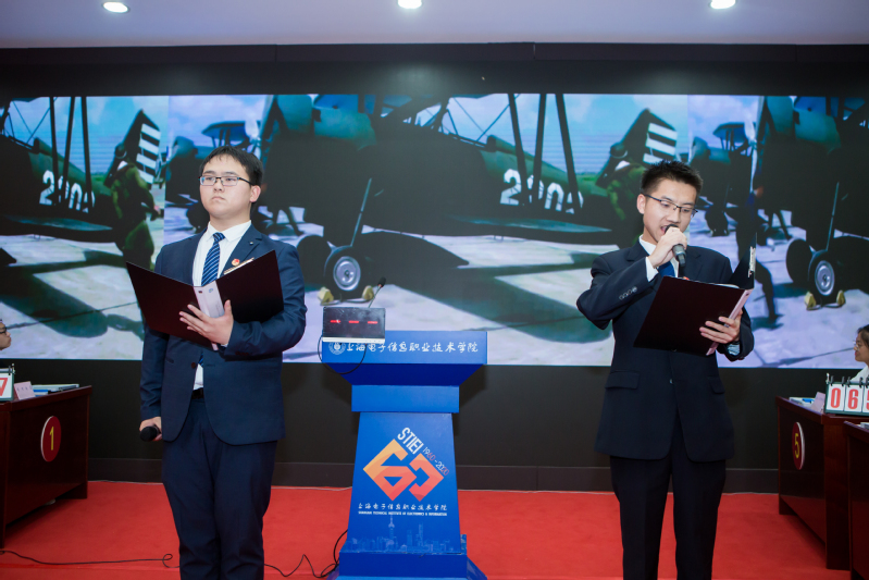 紧张激烈的答题后,中德工程学院张志豪、王成成同学带来诗歌朗诵——《青春—中国》。他们慷慨激昂的朗诵,不仅展示了上电青年的赤诚爱国心,也体现出当代中国青年为国奋战,坚守使命担当的情怀。