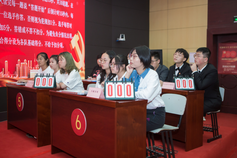 本次党史知识竞赛共分初赛和决赛两个阶段,8个二级学院通过初赛各选拔出3名参赛人员、8名后援团进入最后的决赛。决赛分为单枪匹马、八方支援、千钧一发三个环节,现场高潮迭起,精彩不断。