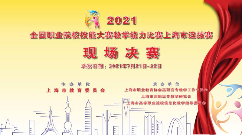 7月21-22日,由上海市教育委员会主办,上海市职业教育协会高职高专教学工作专业委员会、上海高职高专教学研究会(以下简称教学研究会)、上海市高等职业院校信息化教学指导委员会承办的“2021年全国职业院校技能大赛教学能力比赛上海市选拔赛现场决赛”在永利官网徐汇校区举行。来自上海高职高专院校的19支教学团队参加了现场决赛。