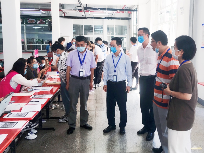 学校领导先后来到普陀校区迎新现场,指导迎新及疫情防控工作,暖心慰问现场的师生,并对实训室的建设工作以及开学后的教学准备工作给予指导意见。领导们热烈欢迎2021级新生的到来,并来到寝室与新生亲切交流,督促他们在普陀校区好好学习生活,充分利用市区资源,开阔专业眼界。