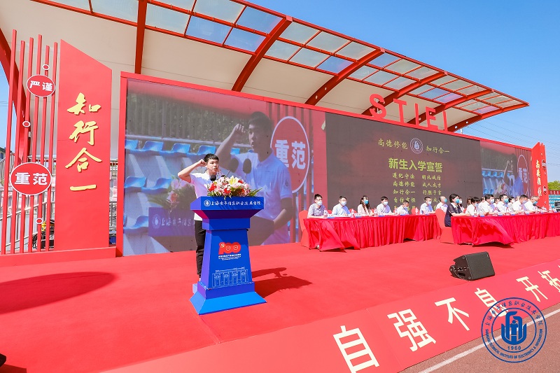 通信与信息工程学院退伍军人阎宇涛作为新生代表发言,他表示,将以进入学校为新的起点,脚踏实地、勤学苦练,不断加强专业技能学习,以真才实干践行“请党放心,强国有我”的铮铮誓言。