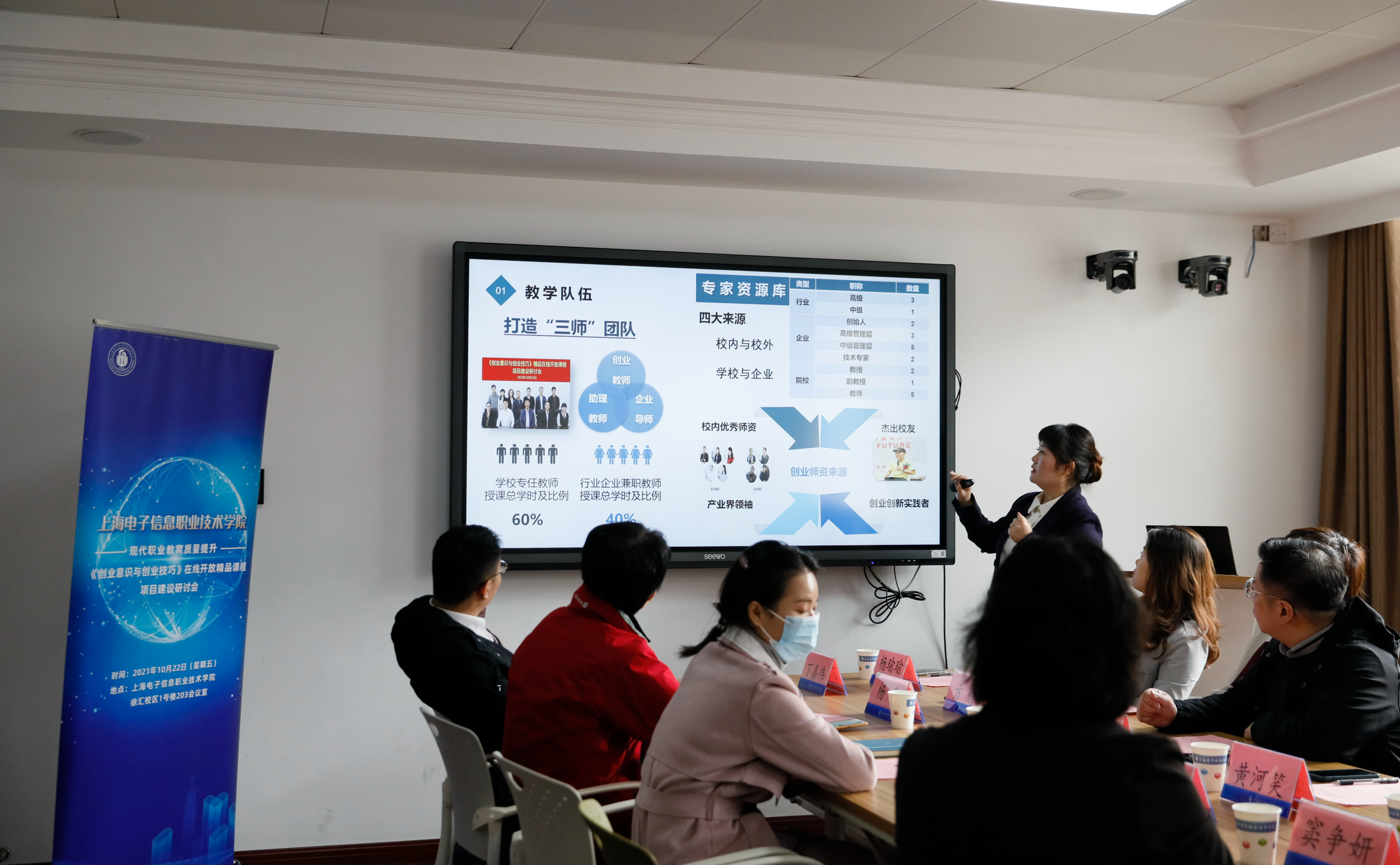 课程负责人陈蓓蕾老师作《创业意识与创业技巧》在线开放精品课程项目汇报,介绍了学校双创教学现状,分享了学校数字化教学改革的具体做法和取得的成效,包括专创融合教学设计、MOOC平台课程建设、教学一体化实践、探索优质数字化教学资源的共享及推广应用和健全质量保障体系等。