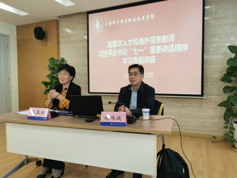 11月3日下午,上海市党史学习教育宣讲团成员、上海市思政课教学名师赵鸣歧教授应邀来校作习近平总书记“七一”重要讲话精神学习专题讲座。学校党委副书记、纪委书记毛玉婷主持会议,全校高层次人才和海外背景教师40余人参加讲座。