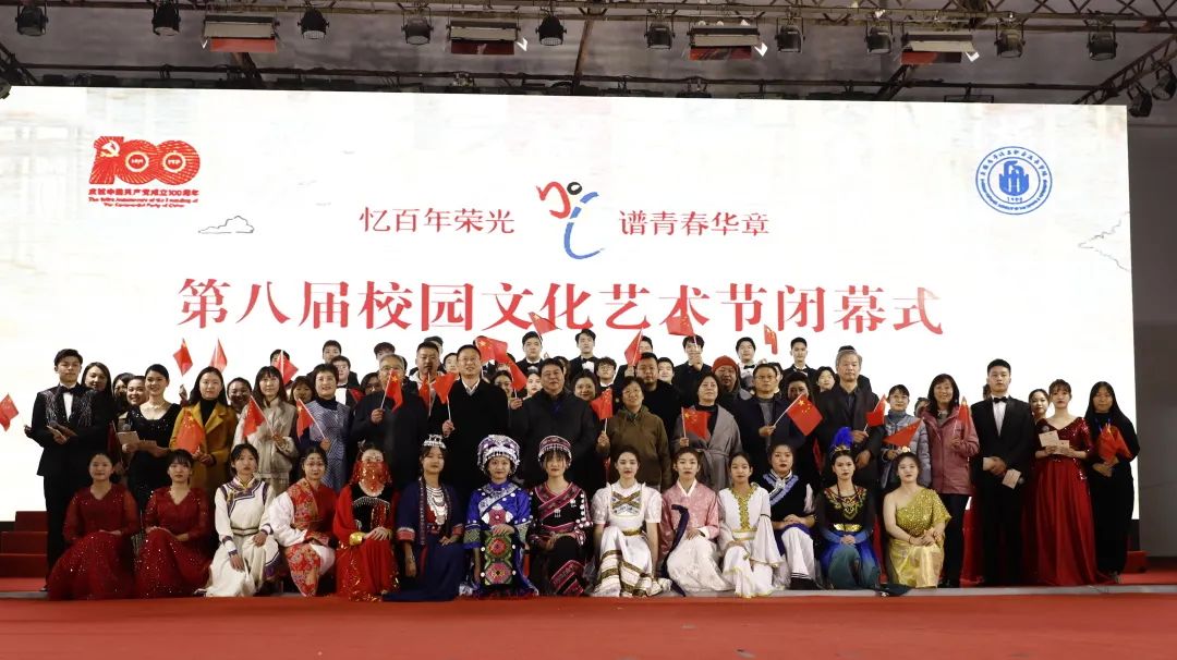 11月25日晚,为全面贯彻落实党的十九届六中全会精神,深入开展“请党放心,强国有我”主题教育活动之际,“忆百年荣光 谱青春华章”第八届校园文化艺术节闭幕式在学校室内运动场隆重举行。出席活动的有学校党政领导、二级学院分管学生工作负责人、校团委、二级学院团总支书记(负责人),以及部分学生代表。活动采用线下观看和线上直播相结合的形式。