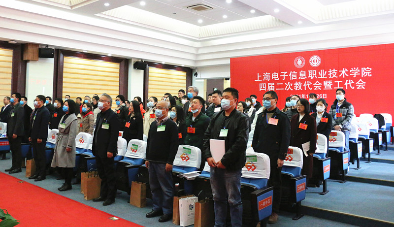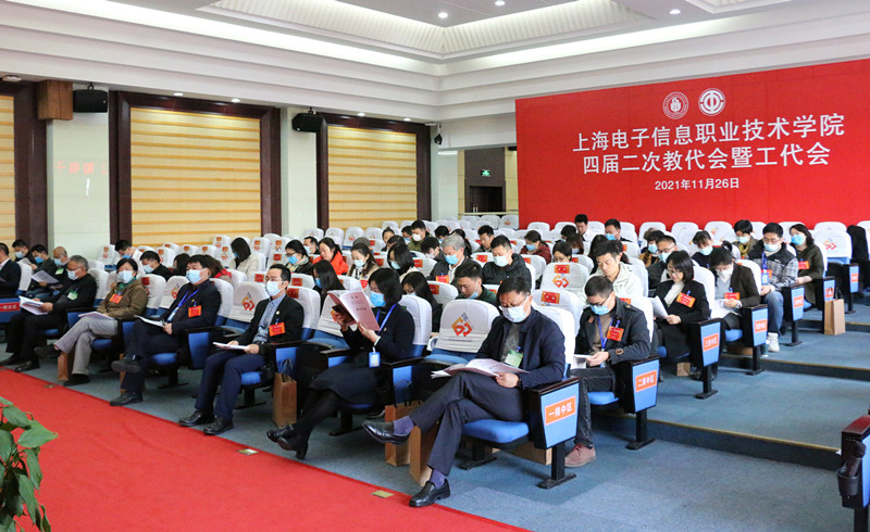 弘扬建党精神,凝聚奋进力量。初冬的校园暖意融融,晴空万里。2021年11月26日奉贤校区C108报告厅内洋溢着庄重热烈的民主气氛,学校四届二次教代会暨工代会胜利召开。肩负着全校750余名教职工的期望和重托,来自全校各条战线的61名正式代表、6名列席代表出席会议。