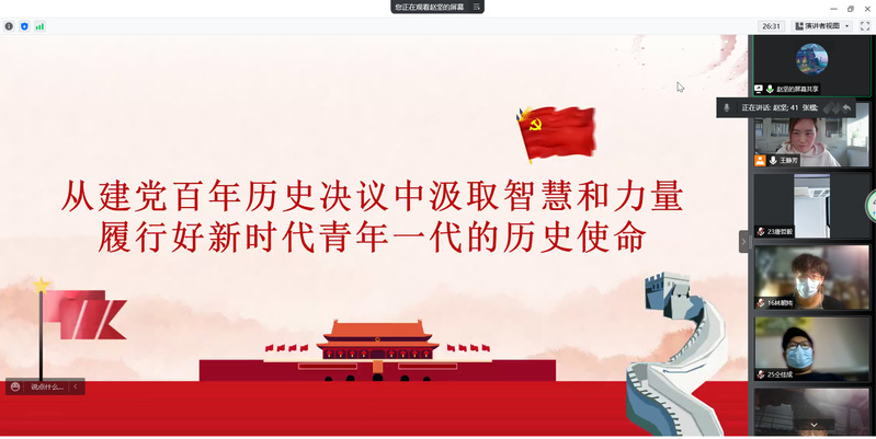 5月5日、6日,学校党委副书记、校长赵坚以“从建党百年历史决议中汲取智慧和力量,履行好新时代青年一代的历史使命”为题,通过腾讯课堂分别为通信与信息工程学院2020级计算机3班网络4班、2020级计算机3、4班的同学讲授“形势与政策”课。