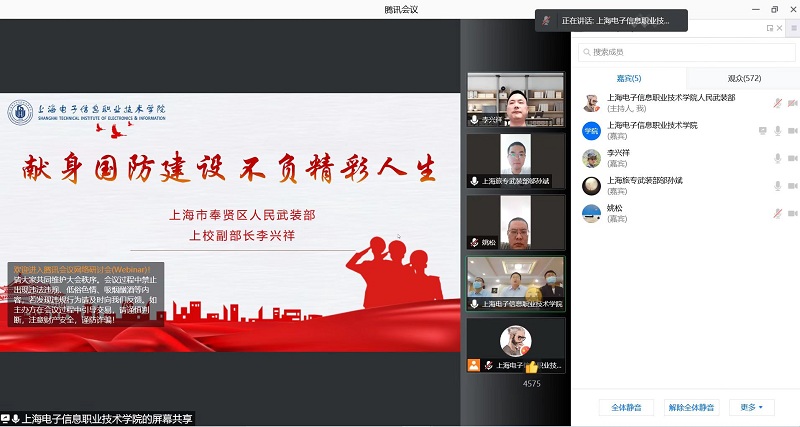 为切实加强学校大学生国防教育,吸引和鼓励适龄青年携笔从戎,参军报国,5月11日,学校通过云端开展了“献身国防建设,不负精彩人生”主题征兵宣传专题讲座。讲座特邀奉贤区人民武装部副部长李兴祥同志担任主讲,学校党委副书记、副校长张涛,学校人民武装部负责人出席,上海师范大学、yl23455永利官网、上海城建职业学院、上海旅游高等专科学校等7所高校1000余名师生在线观看,气氛热烈,人气爆棚,点赞热度高达50余万。