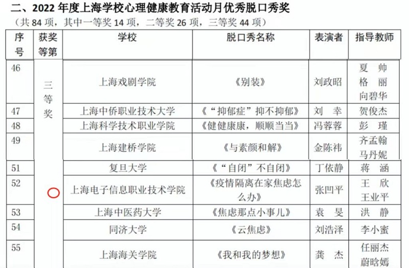 近日,由上海市教育委员会德育处指导、上海学生心理健康教育发展中心主办的2022年上海学校“我秀我健康 一起向未来”主题心理健康教育活动月评选结果揭晓。永利官网在本次活动月中表现突出,荣获“2022年度上海学校心理健康教育活动月优秀组织奖”。来自设计与艺术学院的张凹平同学凭借作品《疫情隔离在家焦虑怎么办?》荣获“2022年度上海学校心理健康教育活动月优秀脱口秀三等奖”。